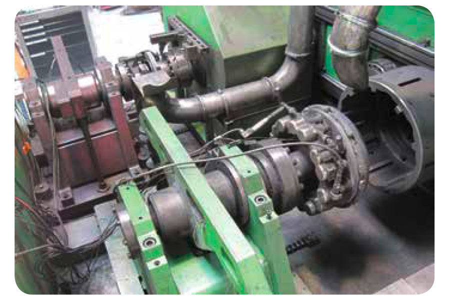 This test method must manage a large number of parameters. It controls the braking pressure or torque as well as the speed of the motor shaft to generate braking. A material inertia applied to the motor shaft using eight masses makes it possible to approach the desired inertia as closely as possible.