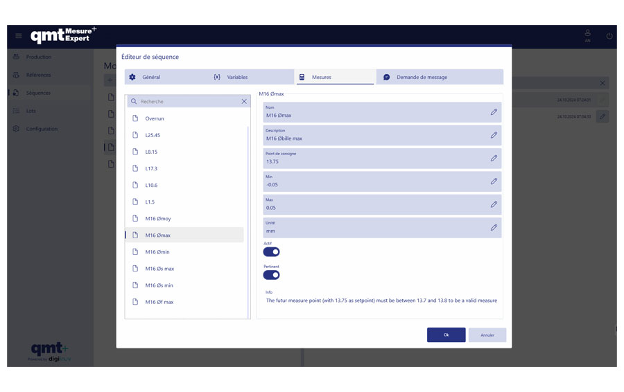 Il est possible de configurer qmtmesure-expert pour pouvoir mesurer différentes pièces