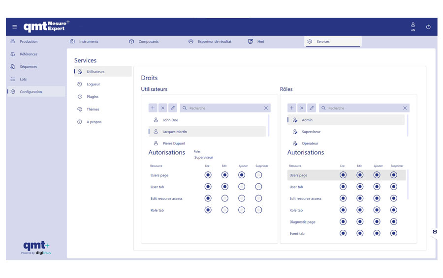 Afin de garantir la sécurité et la traçabilité des actions réalisées, le logiciel qmtmesure-expert inclut une nouvelle gestion des utilisateurs pour une personnalisation des accès et des permissions en fonction des rôles.