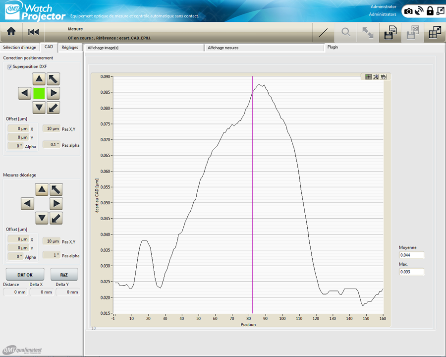 La précision de mesure peut atteindre 1.6 microns, elle est dépendante de la configuration optique. QMTCalqueControl est particulièrement adapté à l'appareil de mesure WatchProjector.