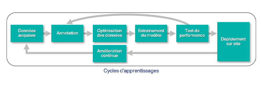 Le niveau de performance obtenu dépend des données utilisées pour l'apprentissage. Nous prenons en charge la définition des données nécessaires, la récolte et la sélection. La gestion des données est aussi prise en charge avec le standard intégré dans nos logiciels.